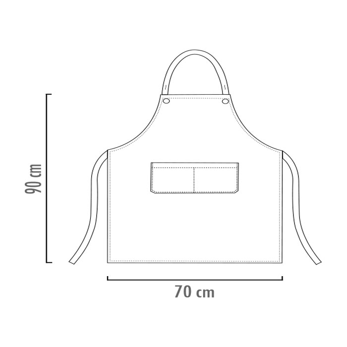 Bib apron with pocket and strong buttons. Size – 90cm x 70cm.