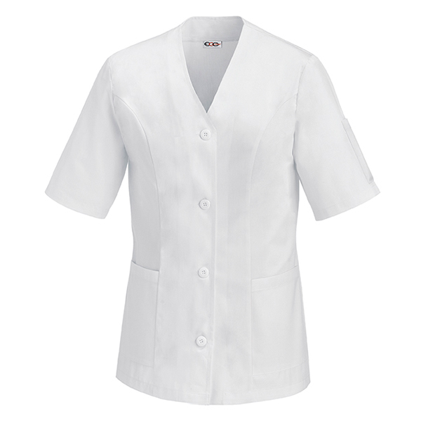Ladies jacket with classic buttons and V-neck style. Available in short and long sleeves.