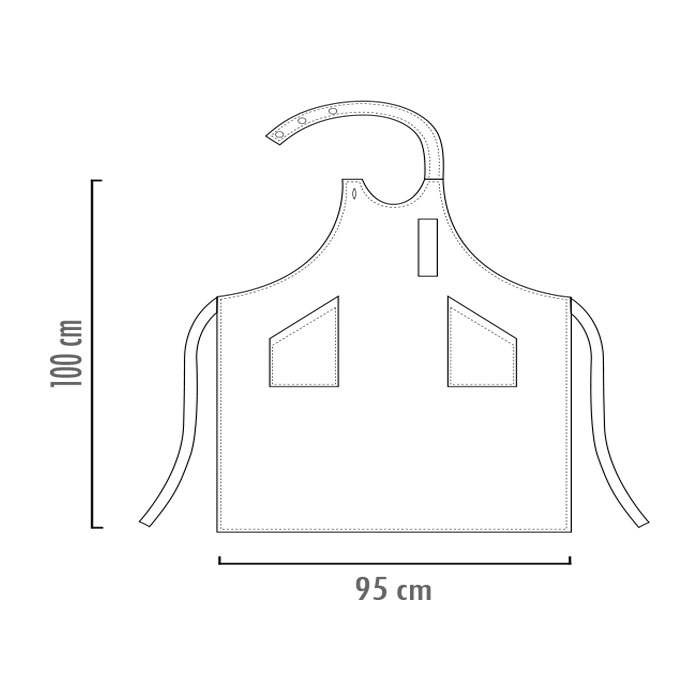 Sommelier Apron with neck adjuster, side pockets and pen pocket. Size – 100cm x 95cm.